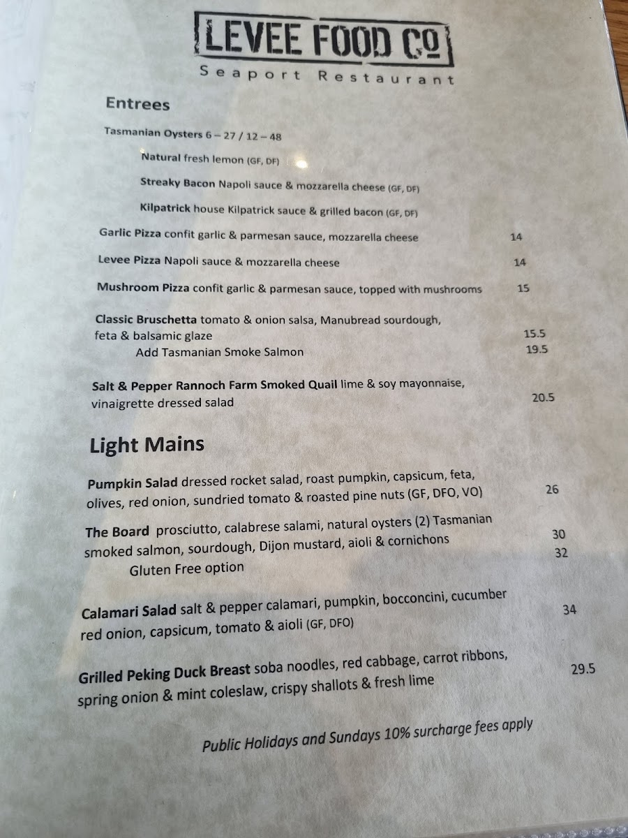 Welcome to Levee Food Co, a culinary gem located at 27 Seaport Blvd, Launceston TAS, where exquisite flavors meet stunning waterfront views. With a relaxed and inviting atmosphere, it promises an unforgettable dining experience amid a picturesque setting. Guests rave about the pizza, particularly the pepperoni variety that strikes a perfect balance between taste and spice. For steak lovers, the fillet steak has received glowing reviews, consistently hailed as one of the best in town.